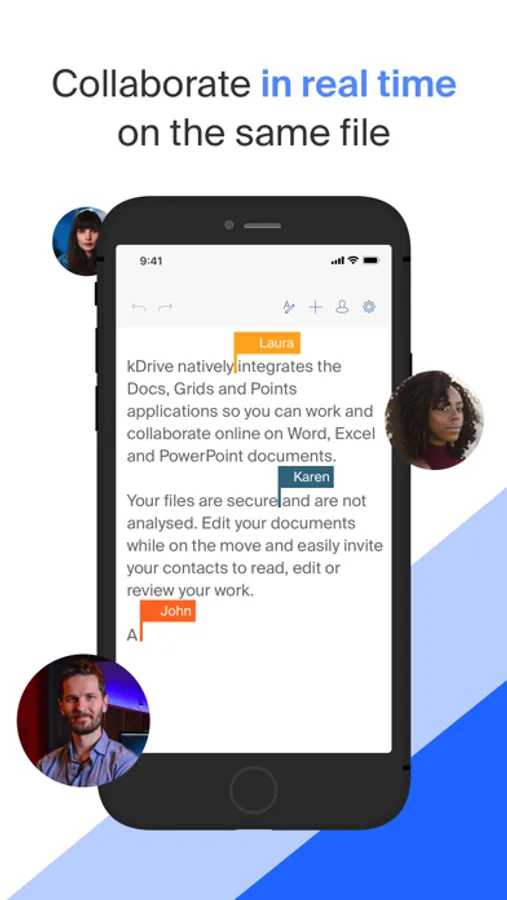 Infomaniak is an independent company owned exclusively by its employees. We don’t analyse or resell your data. You retain full control of your data and can work and collaborate without any limits in a secure ecosystem. The kDrive app is open source and you can consult its code on the Infomaniak github.