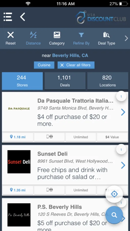 • GPS search. Find deals near you.
