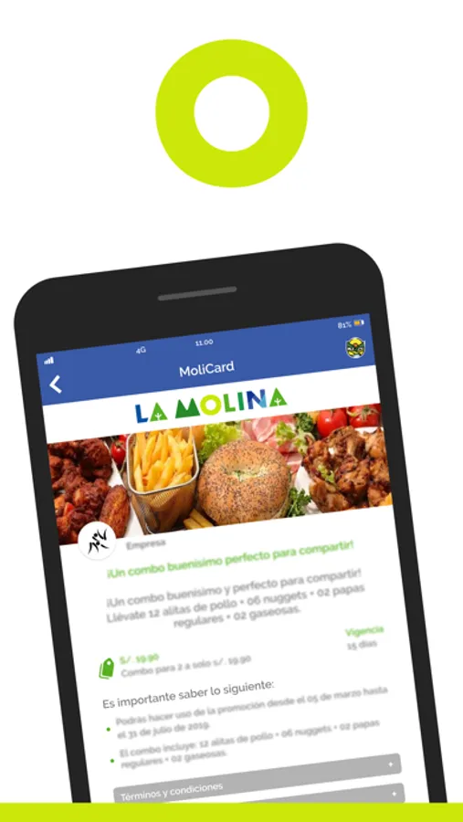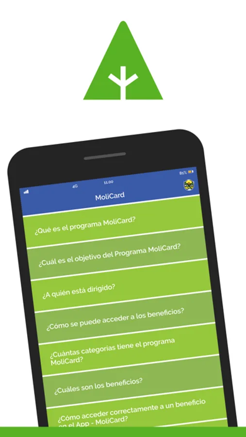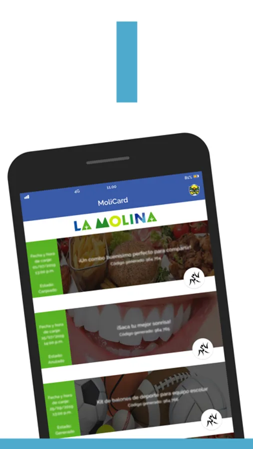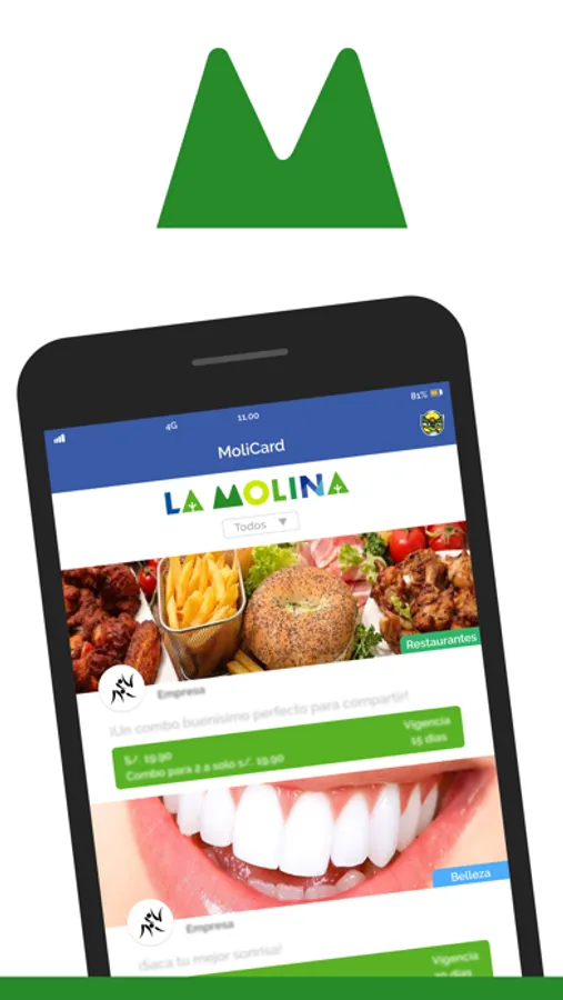 La App MoliCard, es una aplicación de la Municipalidad de La Molina, para que los contribuyentes activos registrados (personas naturales, personas jurídicas y sucesiones indivisas) en la municipalidad accedan a las promociones y descuentos en los diversos establecimientos afiliados al Programa, de acuerdo a lo establecido en la Ordenanza N° 385/MDLM.