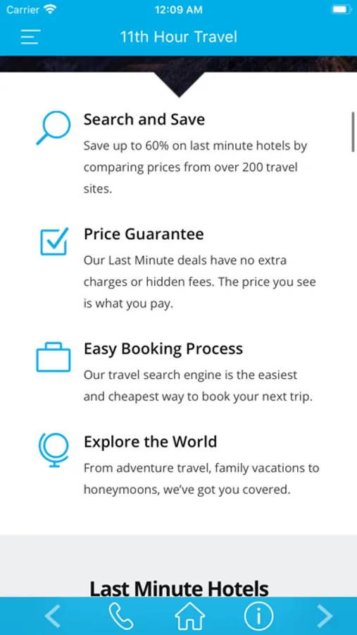 11th Hour Hotels is an efficient last minute travel booking app that helps you compare the best last-minute hotels, motels, apartments and villas on offer with huge savings. We have everything for travel in one place like accommodation, flights, rental cars and tours/activities. Available worldwide from all the leading online travel agents. So download now and save your money!