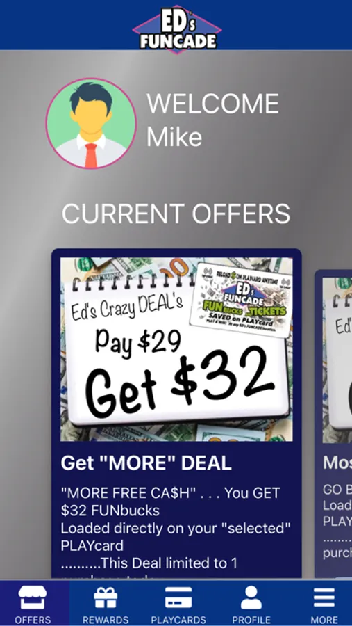All you need to get started is your email, 1 or more Ed’s Funcade PLAYcards, and a valid credit card to securely enter within the app for “HOT DEAL$” only available to you with the Ed’s Funcade app.