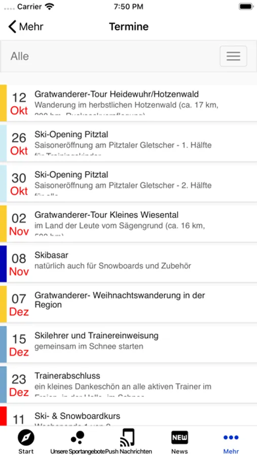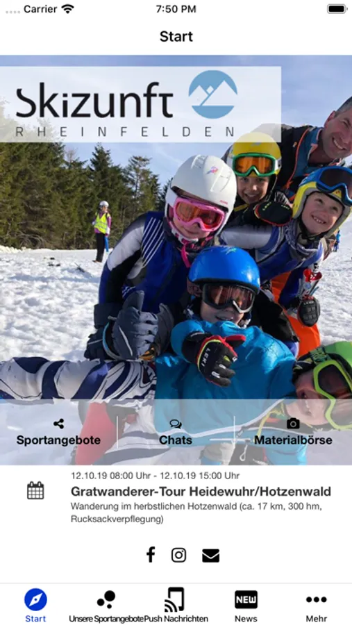 In unserer Skizunft App könnt ihr euch über Aktuelles informieren, Sportangebote finden, Termine einsehen und die Materialbörse nutzen. Skizunft Rheinfelden - wir sind dein Outdoor Verein.