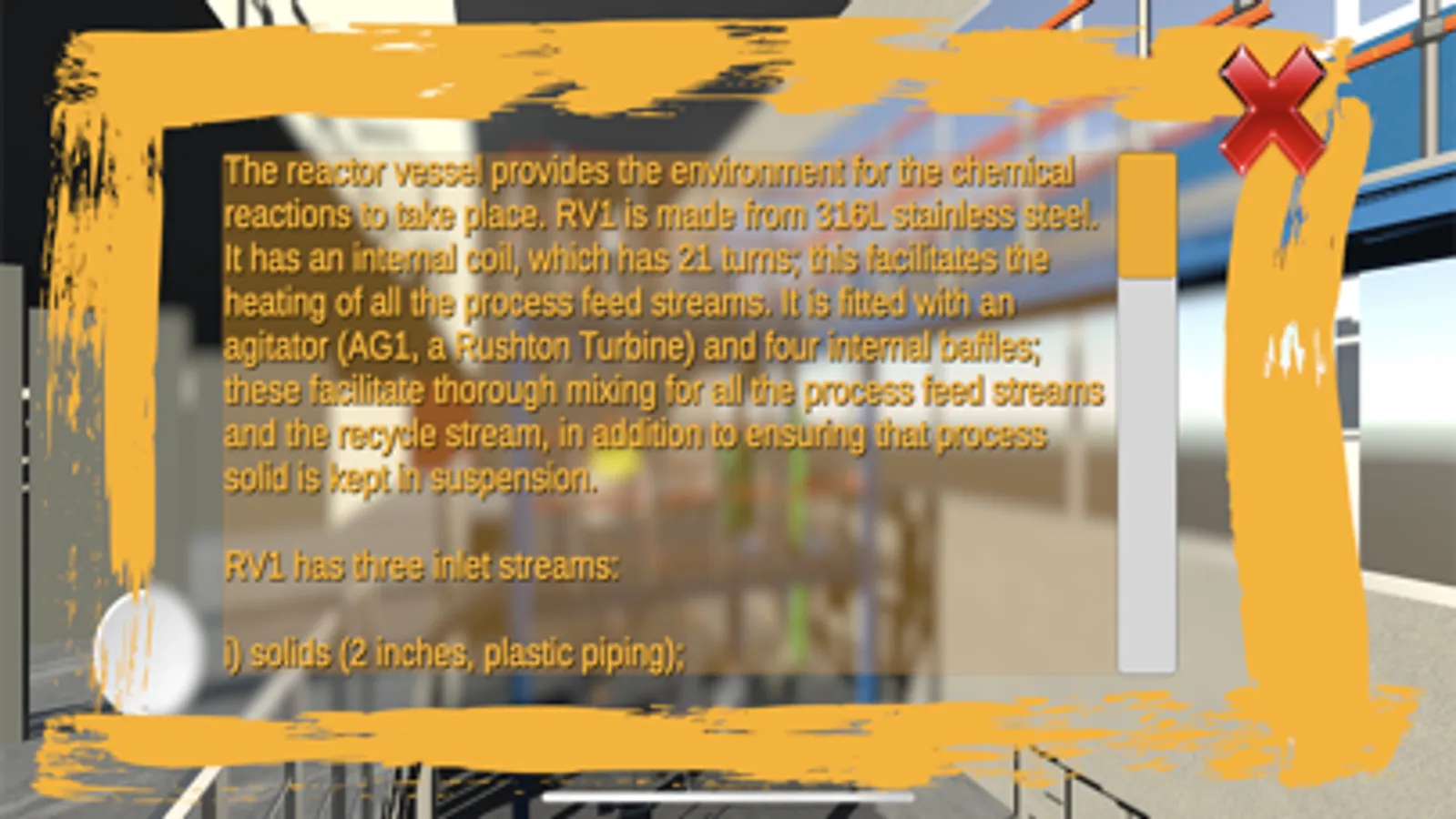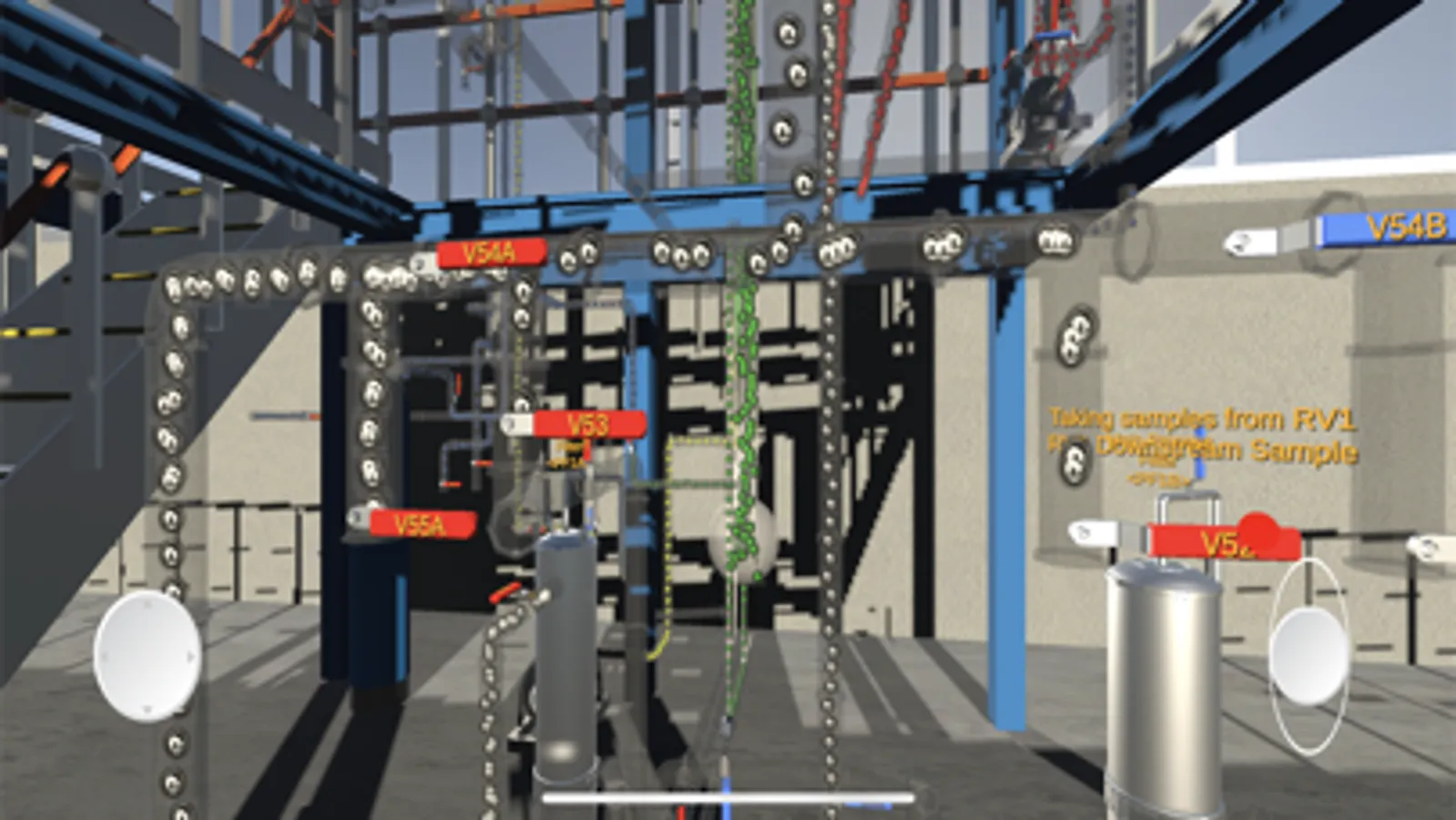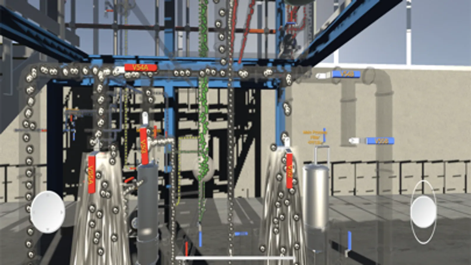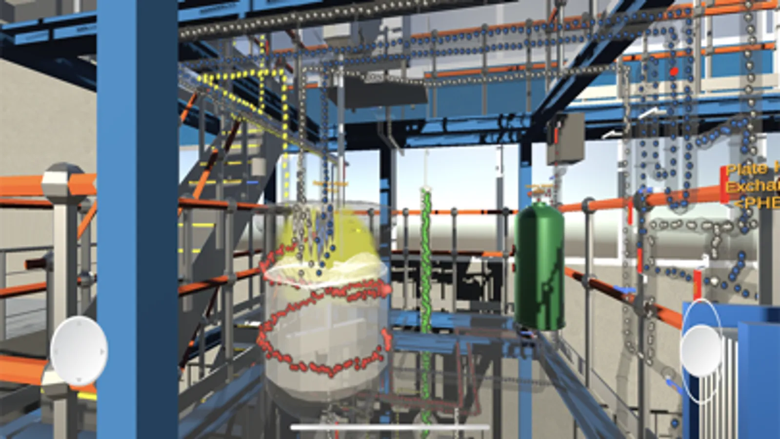 It includes an introduction video to what the plant is designed and how it is operated and a fully interactive 3D model showing what the plant looks like under standard operation. All red valves are interactive and corresponding particle systems to demonstrate their effects on the plant.