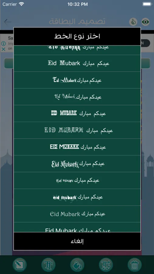 يتيح لك تطبيق كروت المعايدة تصميم بطاقاتك ، وهناك العديد من البطاقات المنوعة الجاهزة في تطبيق كروت المعايدة ويمكنك تحديد أي واحدة وكتابة رسالة الترحيب الخاصة بك ، وتحديد رسائل الترحيب المحددة مسبقًا ، ويمكنك تغيير الخط واللون والحجم.