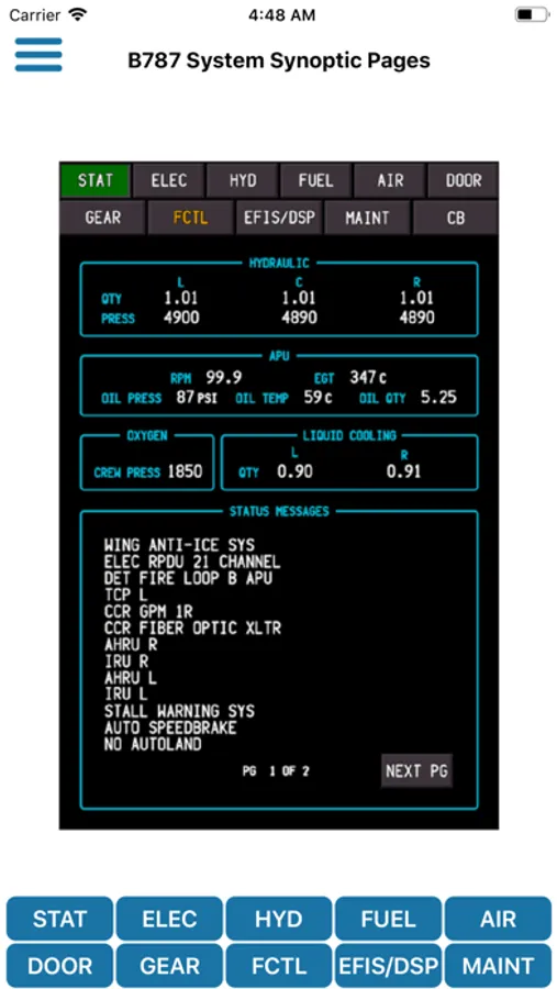 - ECL (Electronic checklist): Full QRH checklist is within your handheld device at your finger tips, best for understanding and preparing for your simulator!