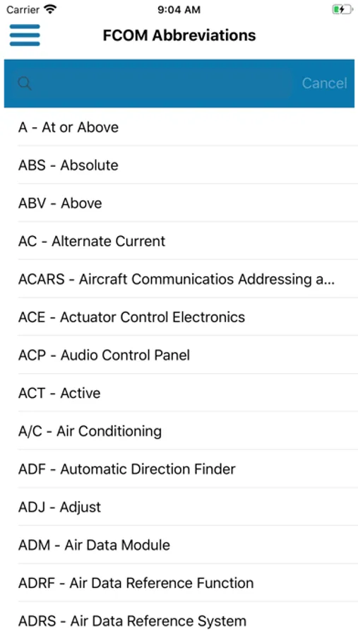 - FCOM Abbreviations: Why to refer to FCOM?!! All abbreviations are at your fingertips and searchable.