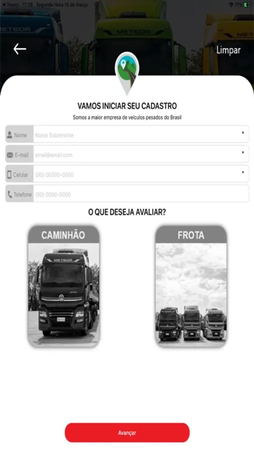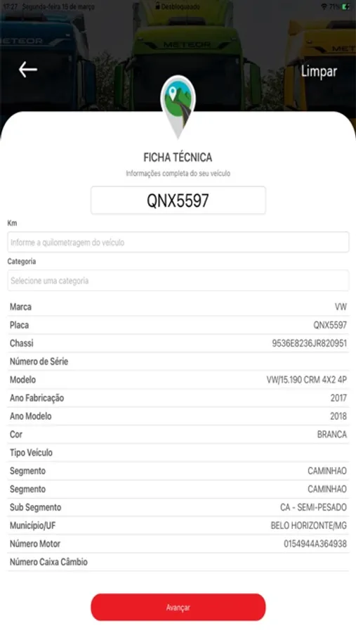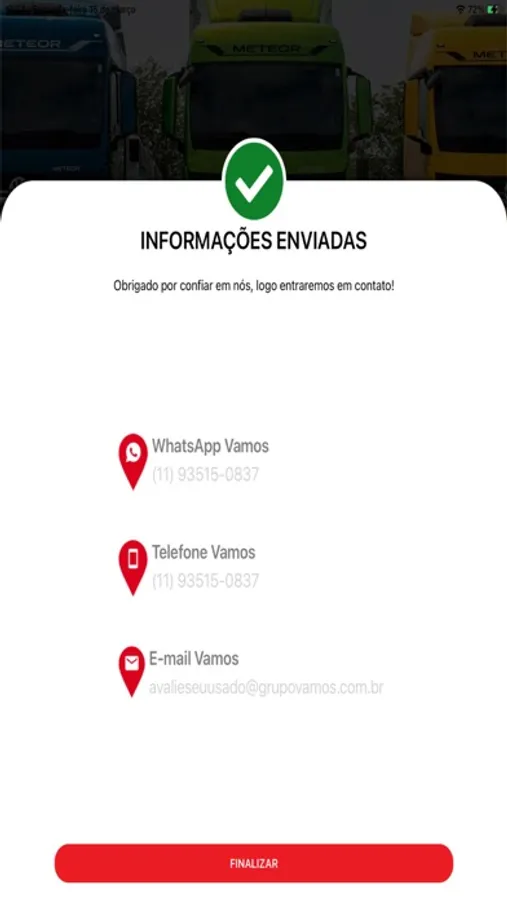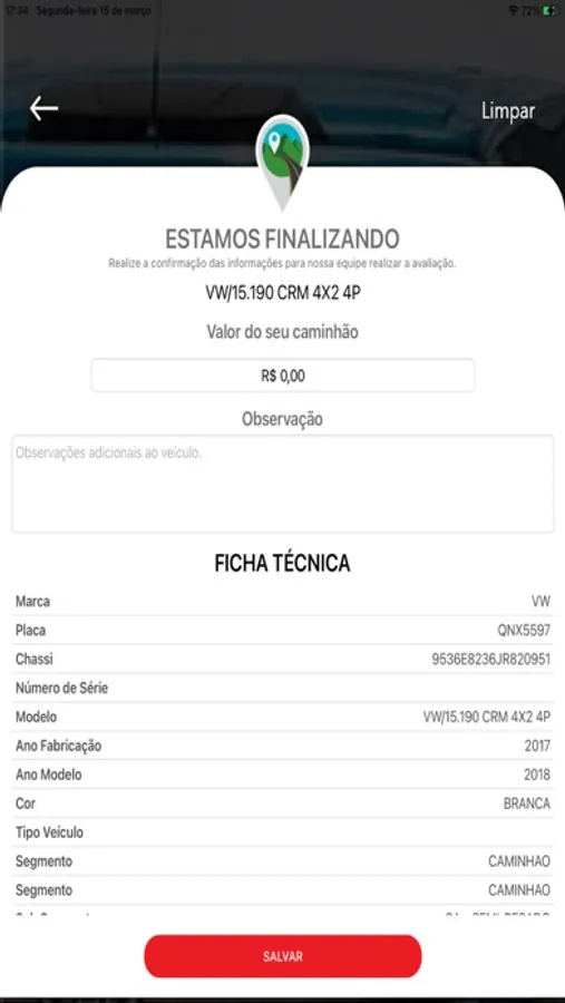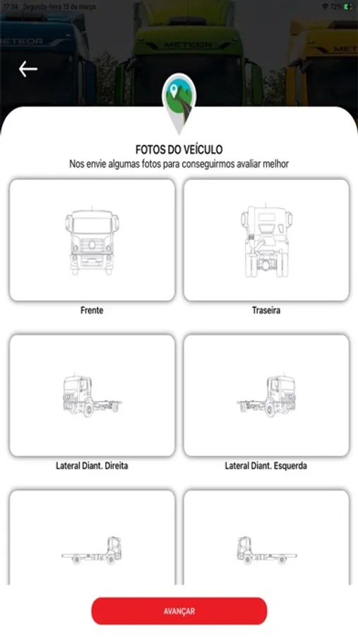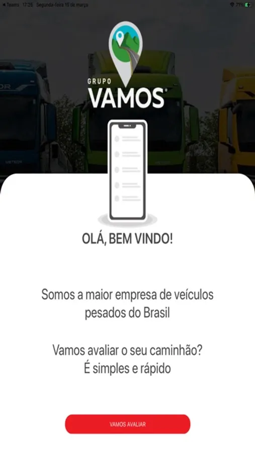 Aplicativo de avaliação de estado e determinação de preço do caminhão usado do Grupo Vamos.