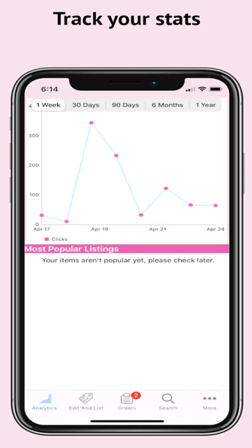 -- Analyze the popularity of your handmade products by the daily trend chart. Once you login to your account, you will see the analytical chart by default. It is the leftmost icon on the tab bar of the app. The seller also can see popular listings that generated most visits under the chart.