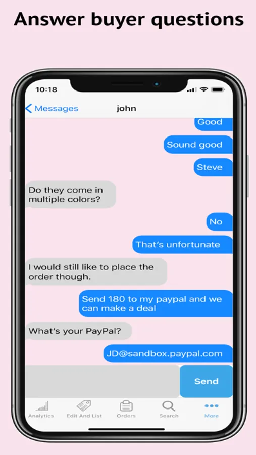-- Interact with buyers through messenger under the “More” icon on the tab bar.