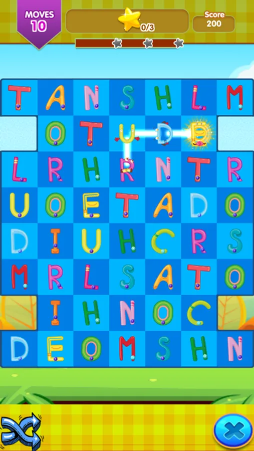 Words over 3 letters create a blaster on a random letter. Create a word with a blaster to destroy the entire row. You will need them for higher levels.