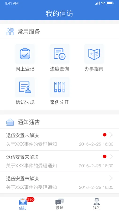 智慧接访主要包含信访登记、接谈、访情记录、监督处置、进度跟踪反馈、结案存档等业务功能,利用综合网络信息化技术手段,将信访业务与音视频资源做了无缝整合。将传统的接谈文字记录信息,变成能听能看、可沟通、可交流的多维信息接谈,更利于全面准确的分析、掌握访谈实情,制定更有效的处置措施方案,从而提供更高效快捷的便民服务。