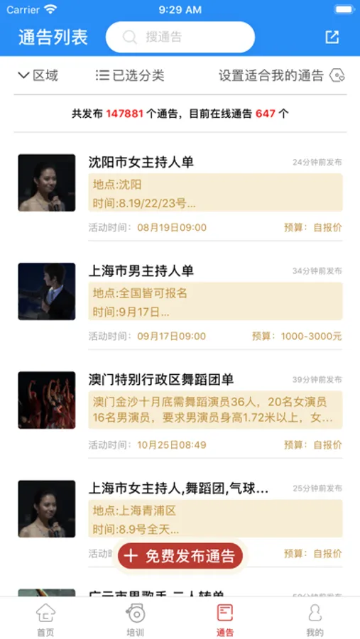 迄今为止凯舟已经发布140000余条有效演出通告;