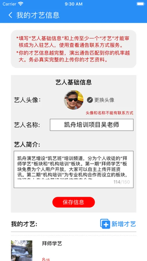 只要您是艺人本人或者演艺团团长都可以免费入驻;