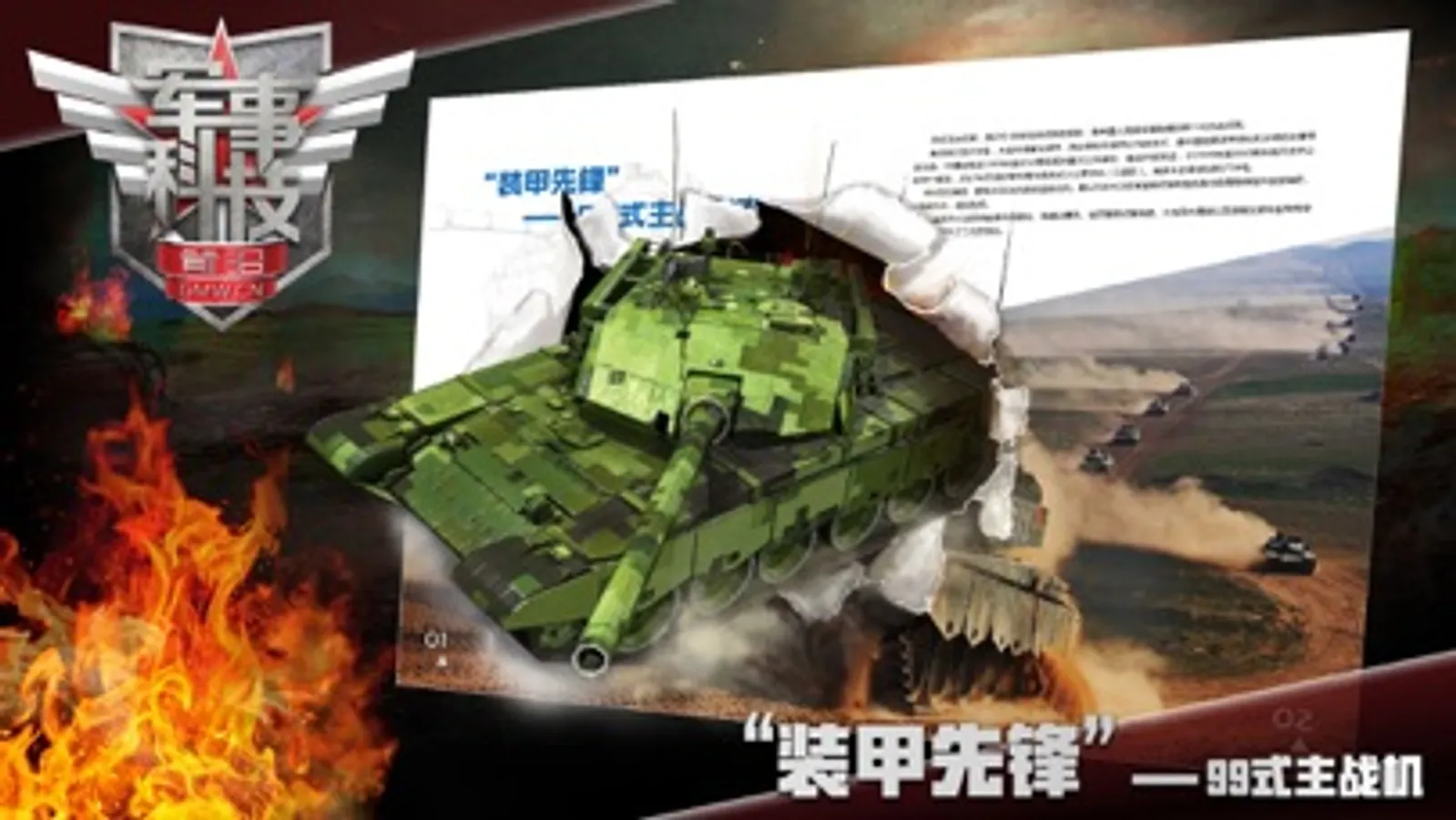 1.AR展示快看!辽宁舰航母上,整齐的一排战机正在等待起飞指令!另一页上,99式主战坦克正在前进、开火……还想知道更多关于武器的奥秘吗?赶紧打开手册,扫一扫吧!