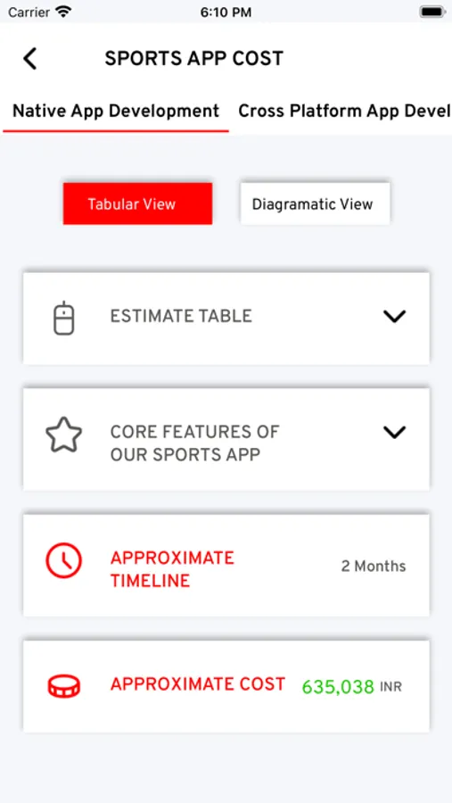 Detailed high level estimate for your mobile app requirements.
