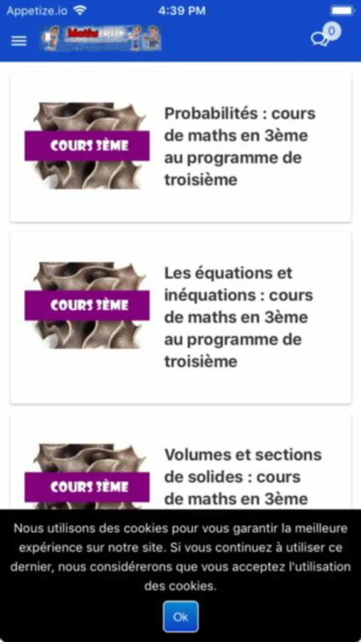 Maths PDF met à votre disposition tous les cours de mathématiques complets pour les élèves du collège jusqu'au lycée. Tous les chapitres des différentes programmes officiels de l'éducations nationale rédigés par une équipe de 12 professeurs. Afin de vous exercer et de progresser tout au long de l'année scolaire, de nombreux exercices avec des difficultés croissantes vous permettront de développer vos compétences en mathématiques.