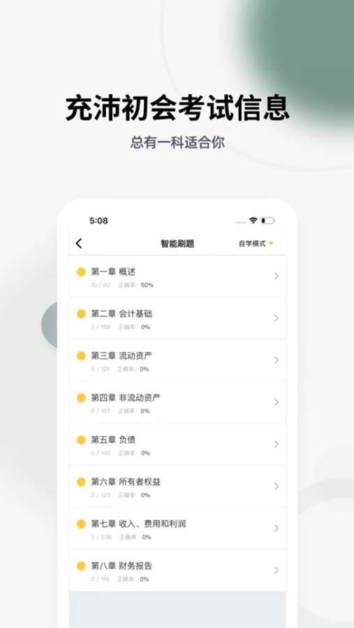 【智能评估】 初级会计职称帮考题库根据每一位考生的在线做题、模拟训练等结果进行智能分析,提供精准的能力评估报告和精准的考点掌握情况。方便考生查看复习,并有助于考生意识到自己学习的短板,从而有针对性的进行专项练习。0基础还用怕么?
