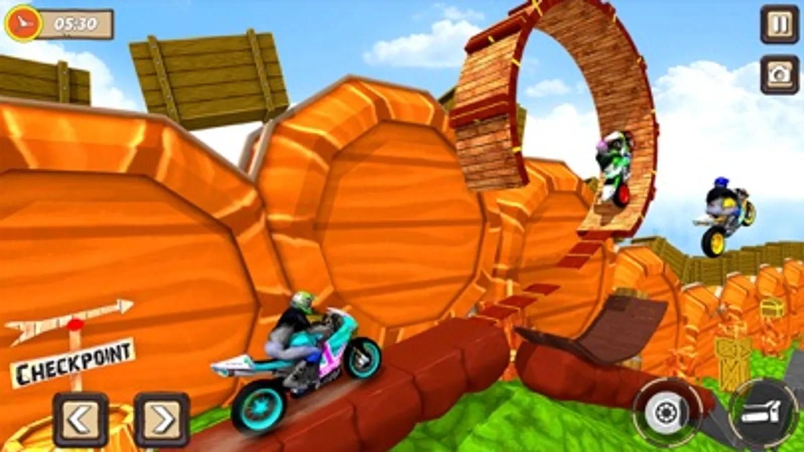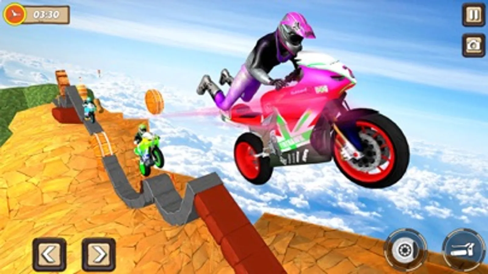 "Top the bike racing competition as you drive through a variety of treacherous tracks and raceway in this bike game and get ready for the ultimate bike stunt racing, drifting and driving in this racing mania. Challenging race tracks await you in this stunt bike game that will test your top stunt and racing stunts skills and how you perform difficult stunts like real stunts, crazy bike stunts, freestyle stunts and tricky stunts. Here is the chance to step up and prove that you are the most intense, competitive and best offroad extreme bike racing driver, biker, and also a pro racing stunt man.