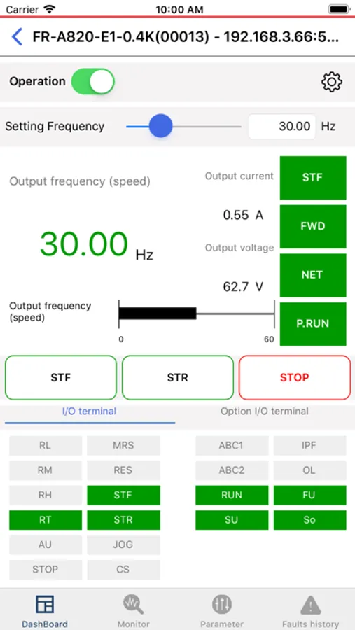 ・ Monitor (Output frequency / Output current / Output voltage / Operation status display / I/O terminal status)