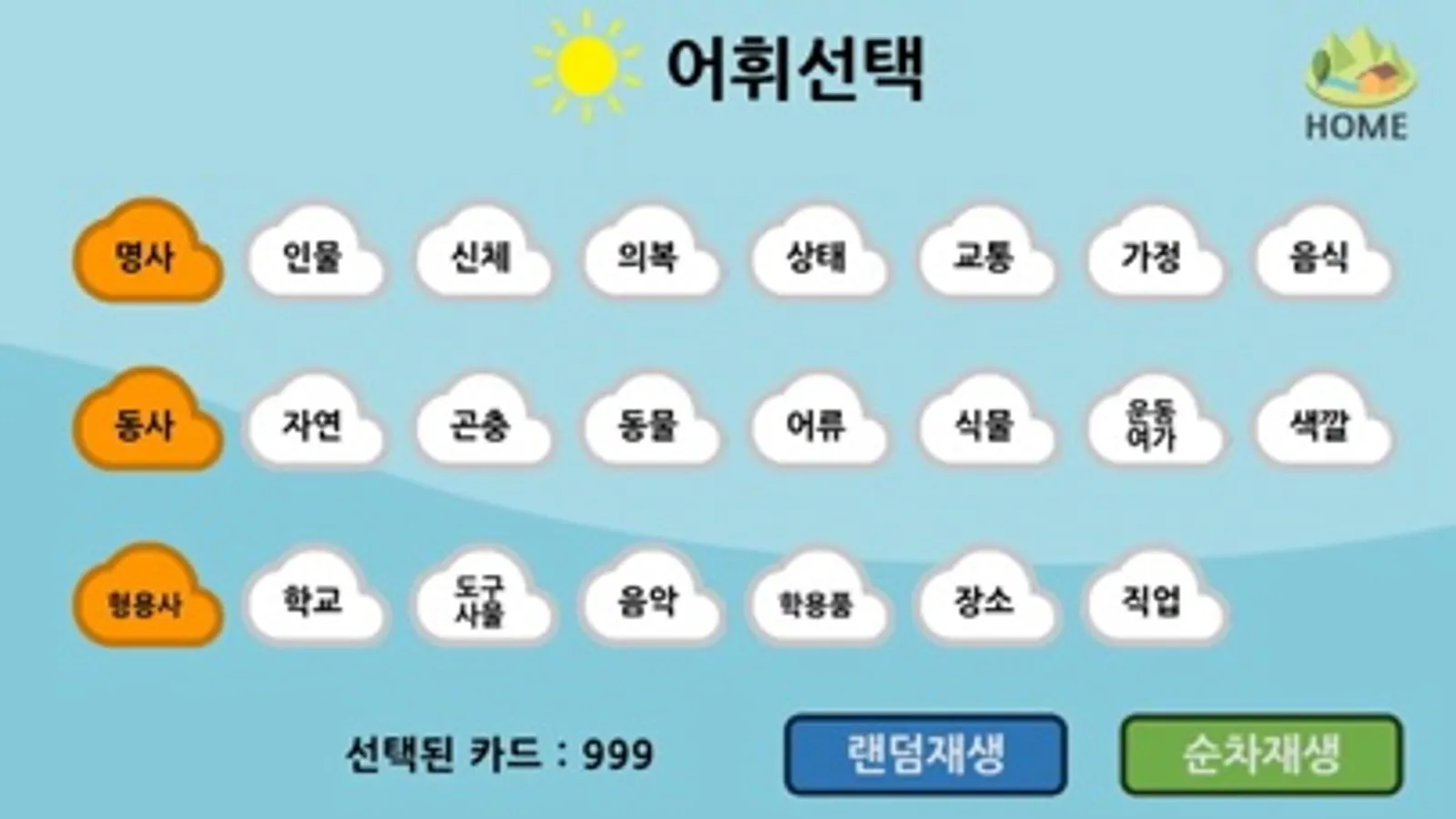 1000개의 단어를 품사별 범주별로 분류하여 단 세번의 터치로 보여주고 싶은 어휘 목록을 만들 수 있습니다.