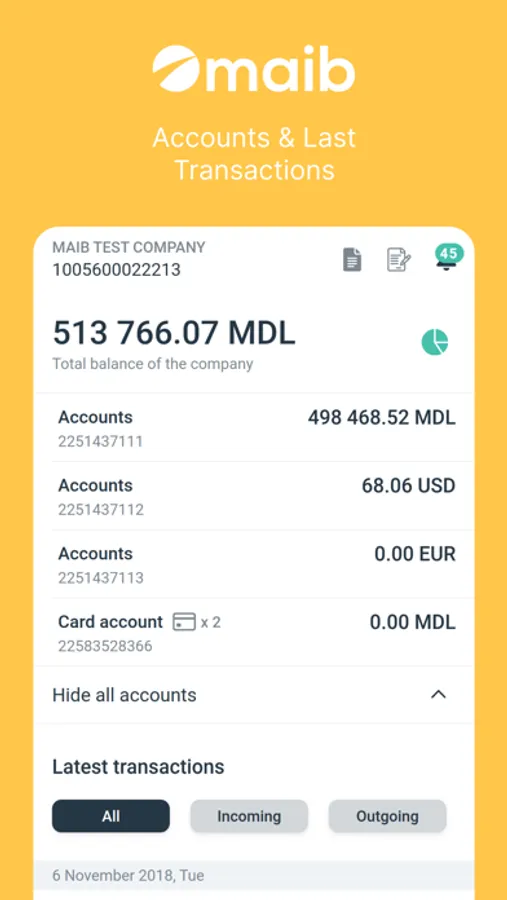 - List of accounts and balances;