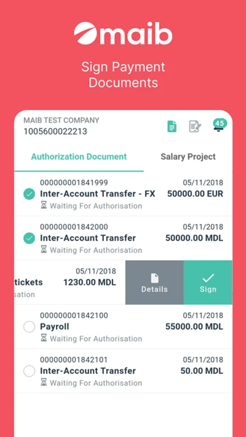 - View documents for signing;