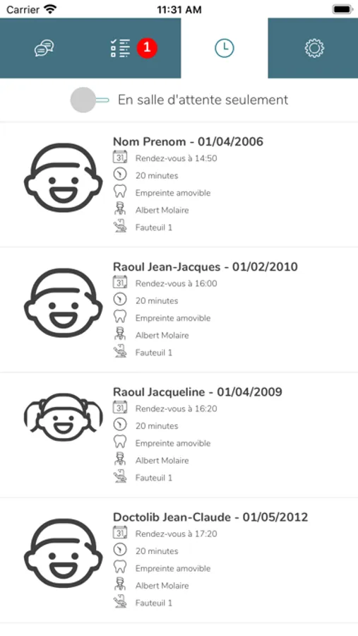 Reliée à votre logiciel de gestion, l’application DENTAL Companion vous permet d’utiliser la messagerie interne de votre logiciel, de gérer vos tâches mais aussi de visualiser en direct, votre salle d’attente.