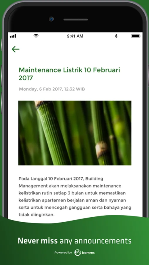 Introducing Verde Two by BAMMS, a mobile application that allows all tenants to receive information about their building and units, to report problems or incidents, to book facilities, to create and manage inquiries, and to request for any value added services provided by the building management.