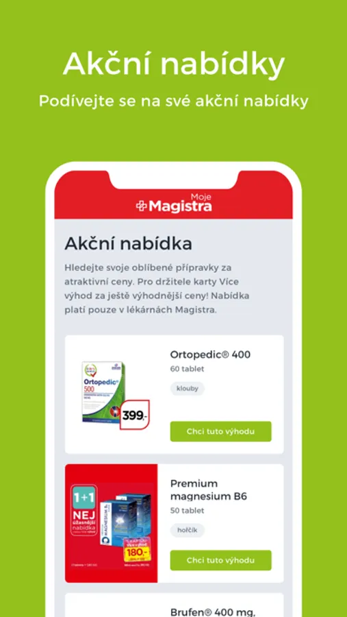Ušetřete čas i peníze! Rezervujte si nyní své léky a e-recepty dopředu a budete mít jistotu, že na Vás v lékárně budou čekat. To vše jednoduše ve třech krocích, které zvládne každý. Podívejte se na akční nabídky, slevové kupóny nebo si najděte nejbližší lékárnu ve svém okolí. A pro zaregistrované klienty s kartou Více výhod ještě více!