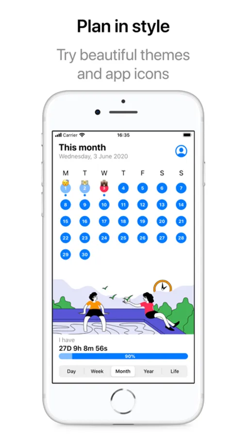 ■ Countdown timer: see how much's left till the end of day, month, week, year and "life". This feature is optional and can be switched off in app settings