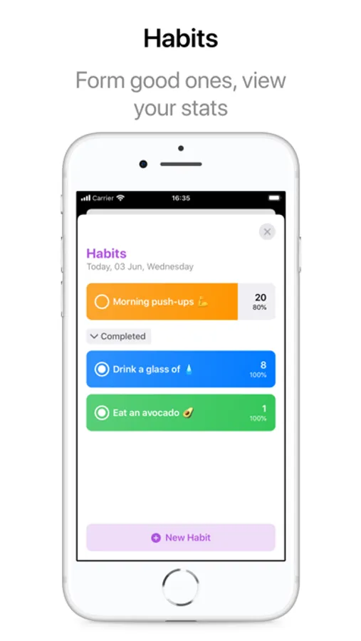 ■ Habits: form cool healthy habits, view your weekly and monthly progress