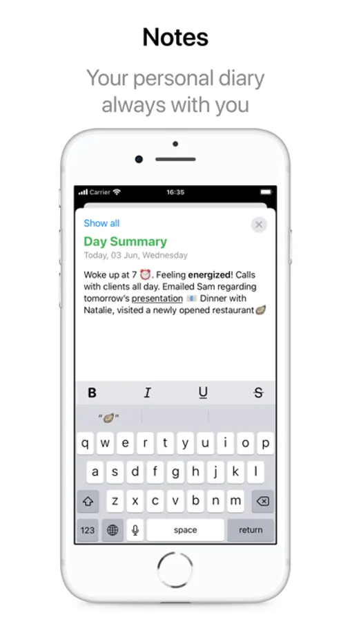 ■ Schedule: import events from Apple Calendar, create notifications, plan your day down to a minute