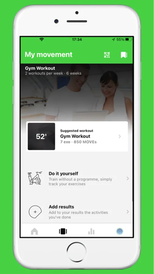 MY MOVEMENT: What you’ve chosen to do: here you will find your programme, classes you’ve booked, challenges you’ve joined and all the other activities you’ve chosen to do at your facility