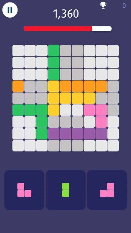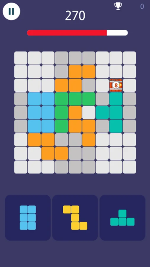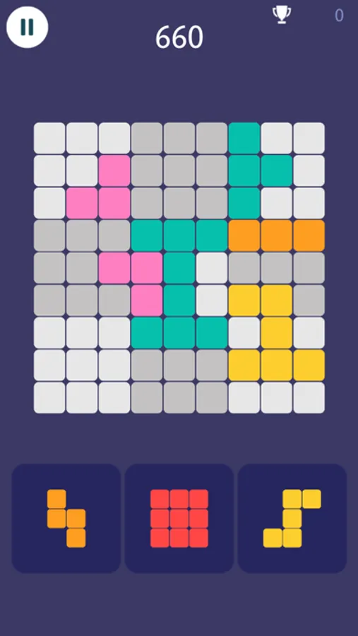 Simply drag and drop the blocks to fit the board, match blocks in lines or grids to clear them. Aim for the highest score as much as possible