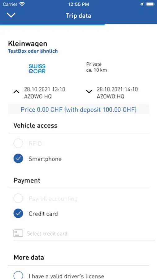 Das Carsharing bietet alle Vorteile eines Autos, ohne eines zu besitzen. Nutzen Sie die Swiss E-Car App, um ein Fahrzeug in Ihrer Nähe zu finden. Nach der Registrierung stehen Ihnen zahlreiche Elektrofahrzeuge rund um die Uhr zur Nutzung zur Verfügung. In unseren Tarifen sind Service, Reinigung und Kosten für die Versicherung inklusive. An den Ladestationen von Swiss E-Car werden die Elektrofahrzeuge mit nachhaltig produziertem Naturstrom aufgeladen.
