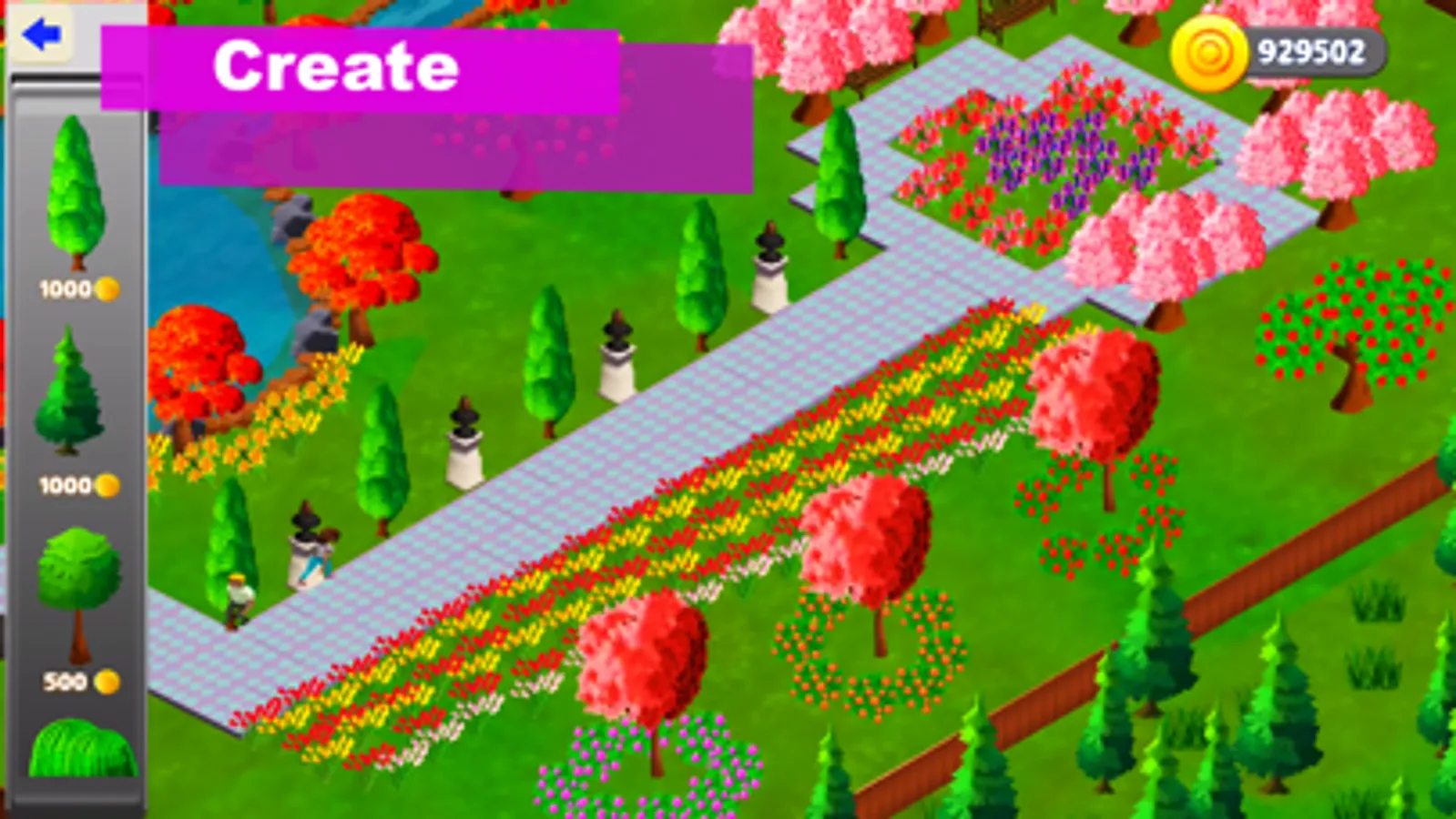 The more you add items to the garden, you will earn more gardenside coins to add more and more items include(trees, flowers, floor, and light).
