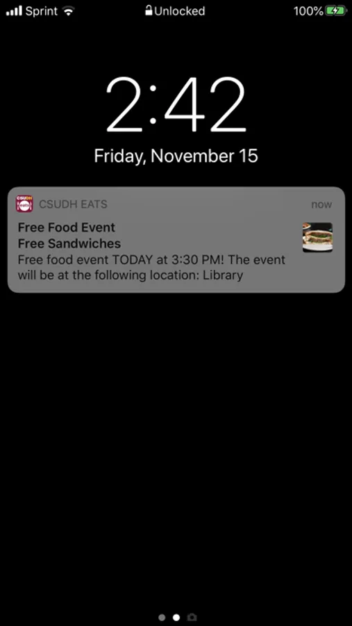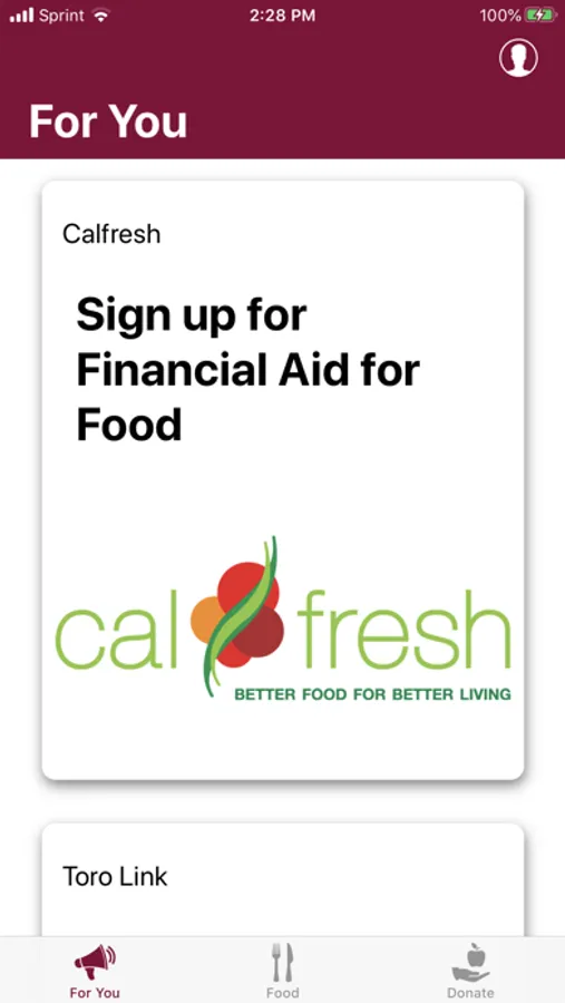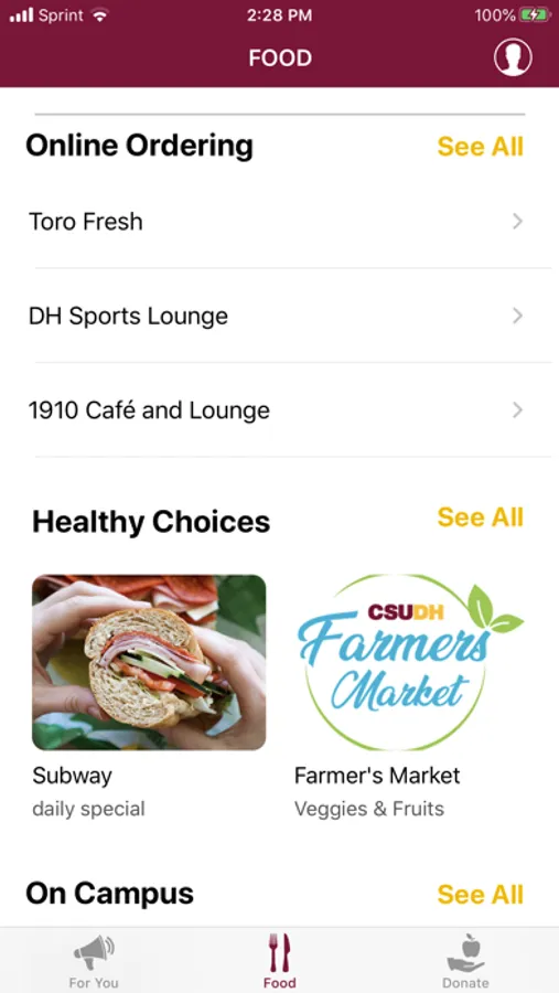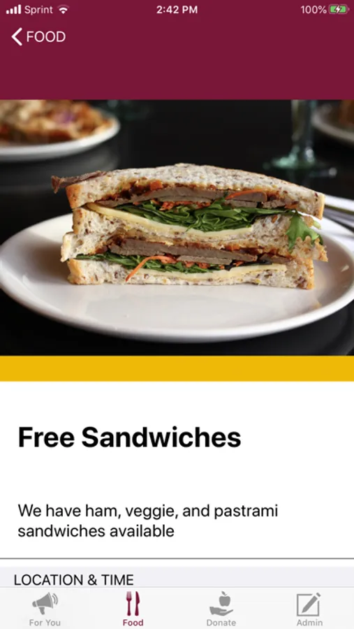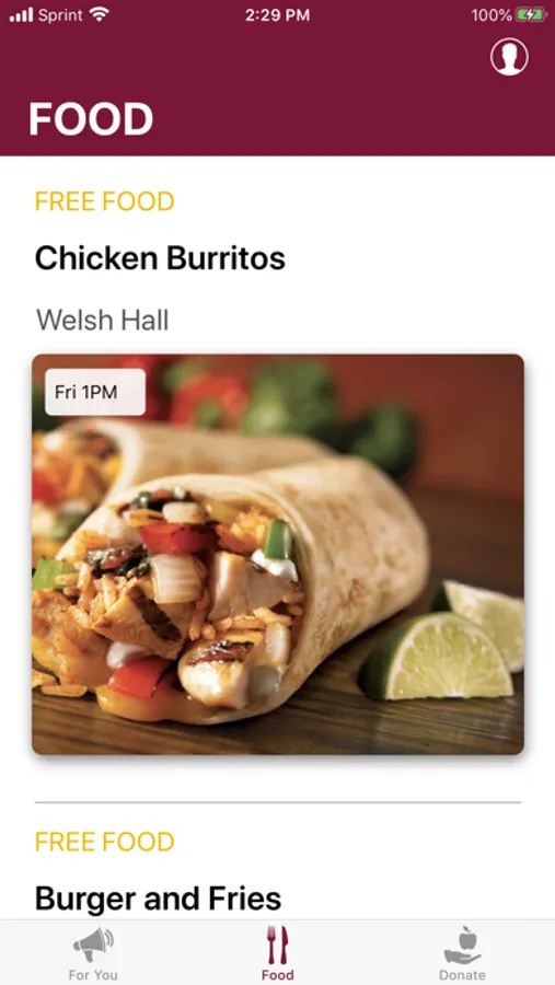 2. Food section - provides a virtual menu where students, faculty, and staff can find out what's available to eat right now and if the food is free or for pay.