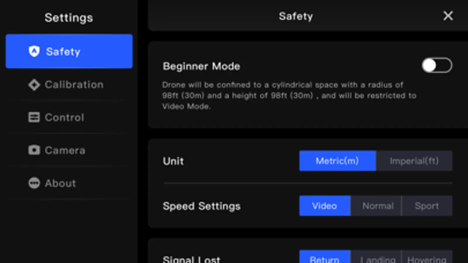The App shows real-time video transmission, displays flight parameters and allows you to customize, shoots HD images and records videos, etc.