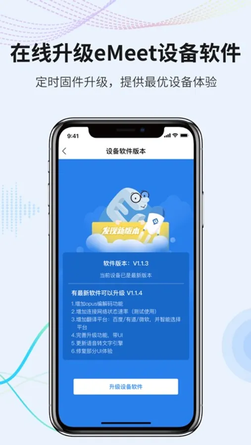支持在线升级eMeet AI BUDS耳机的设备软件,定时固件升级设备软件。