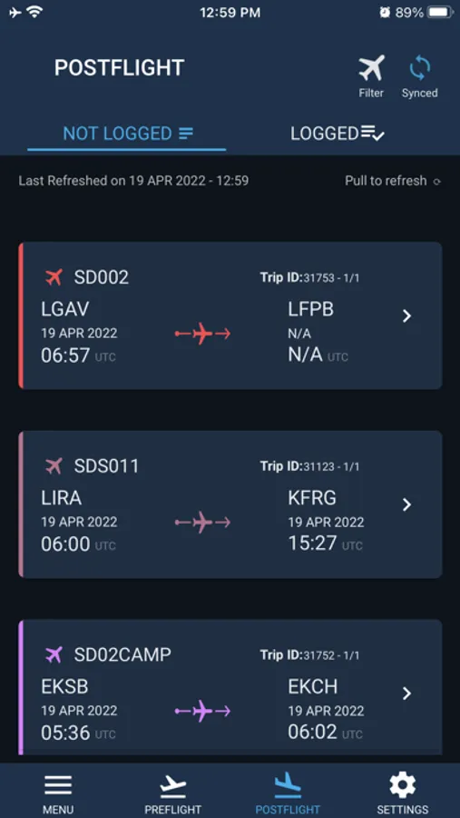SD Crew gives flight personnel timely access to automated data coming from Satcom Direct’s FlightDeck Freedom service. SD Crew allows pilots to view, modify, and log Out, Off, On, and In (OOOI) times, fuel levels, and crew details. Data modified and logged in the SD Crew app is stored in the SD PostFlight system where it can be verified and sent to maintenance providers, engine manufacturers, and scheduling systems.