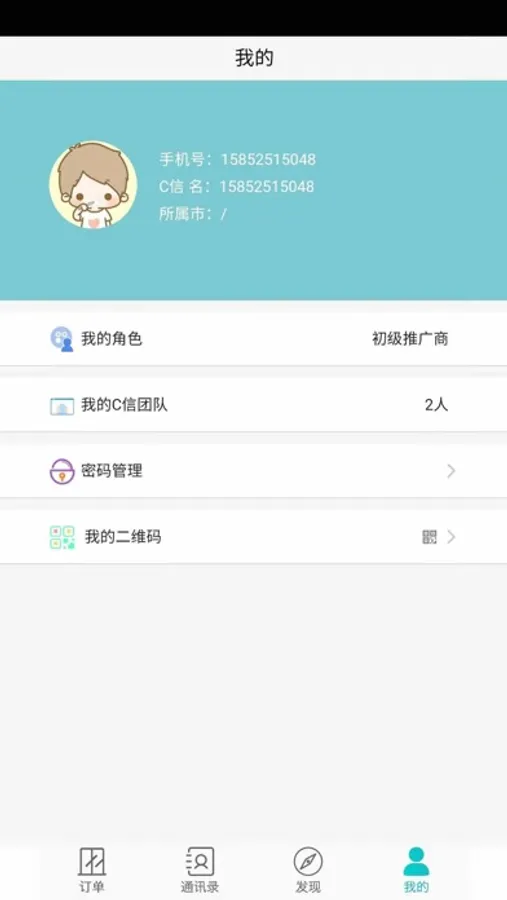 我的模块:设置登录密码,查看自己二维码以及注册信息等
