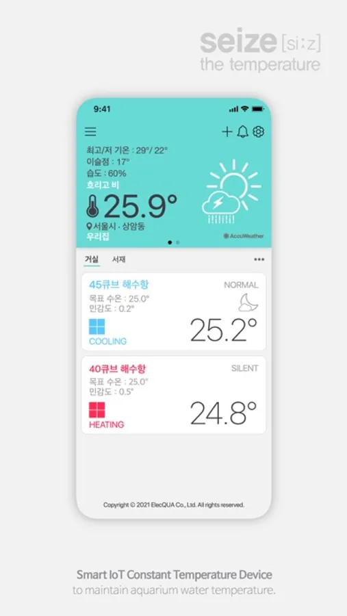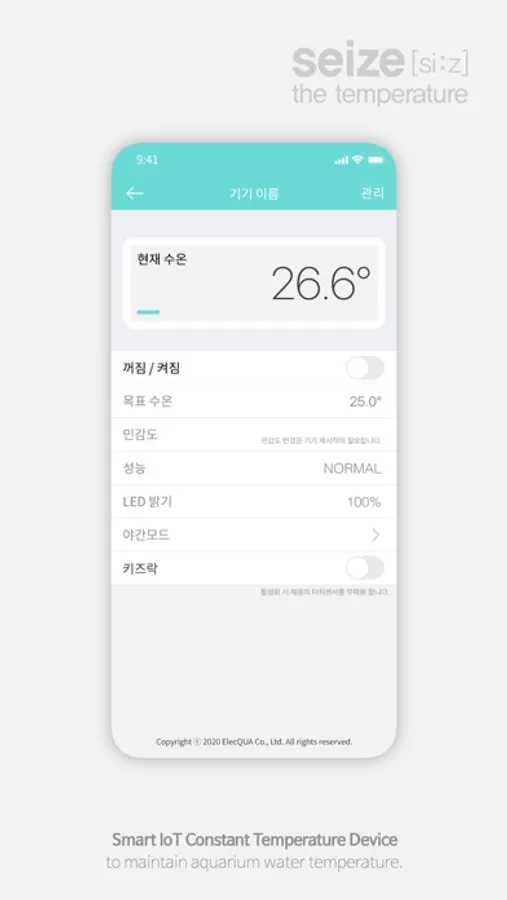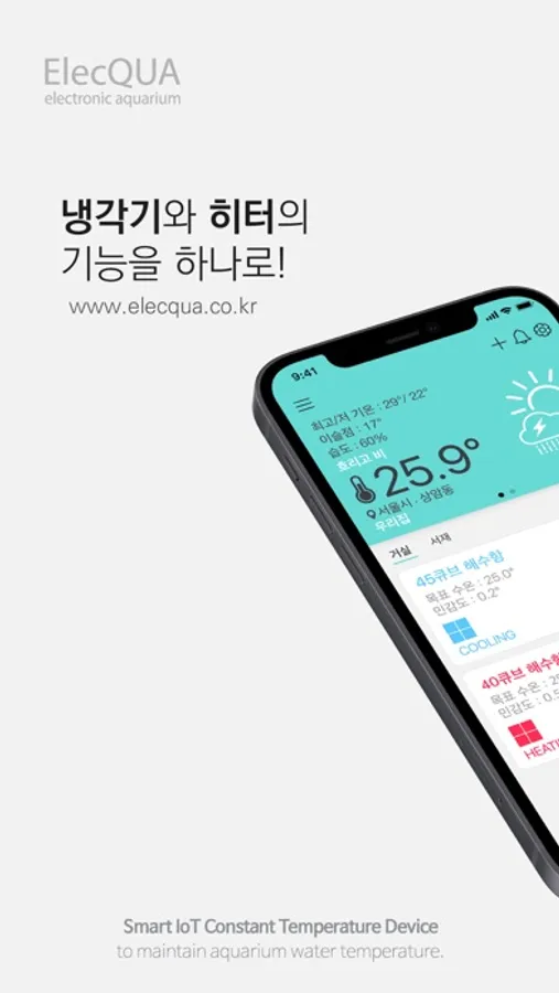 「시즈」는 가정용 관상어 수조의 수온을 자동으로 관리해주는 스마트 IoT 디바이스입니다.