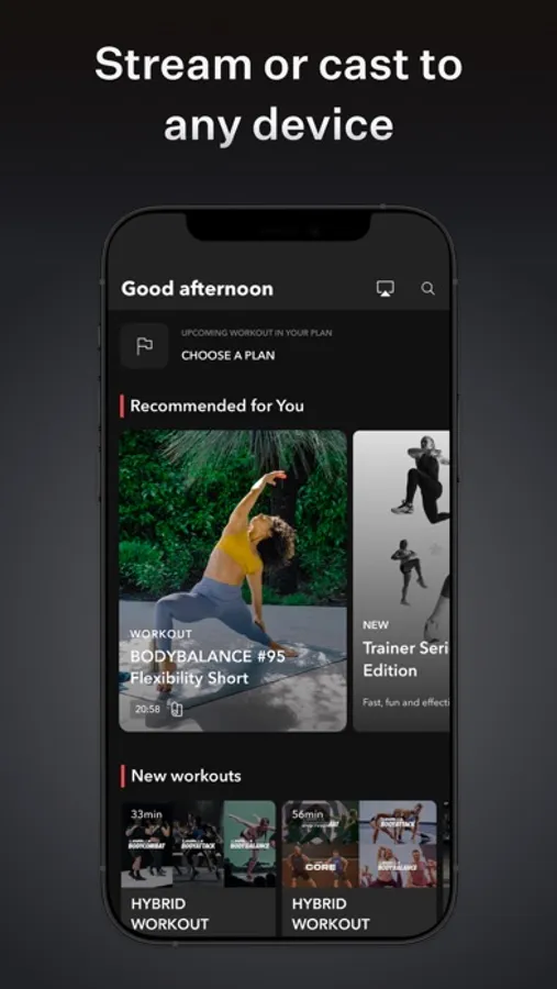 · Stream, cast or download – and train wherever, whenever