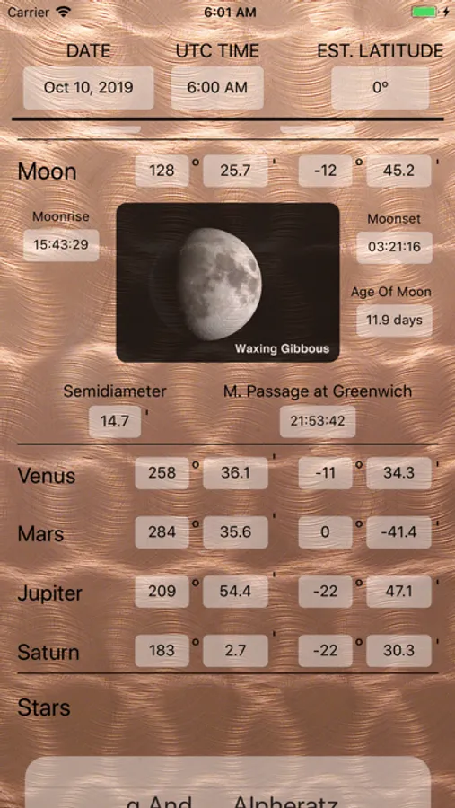 - GHA/dec for Venus, Mars, Jupiter, and Saturn.