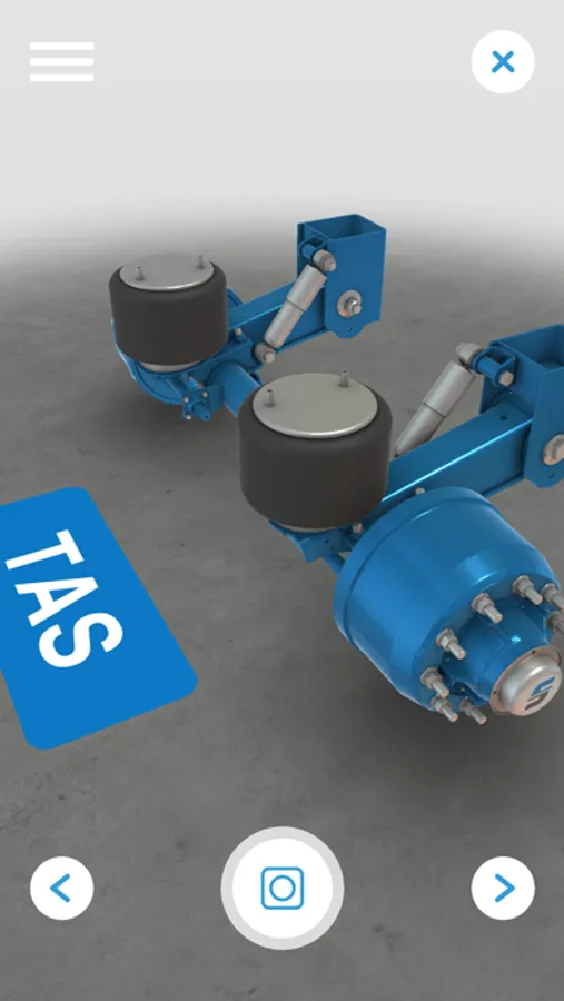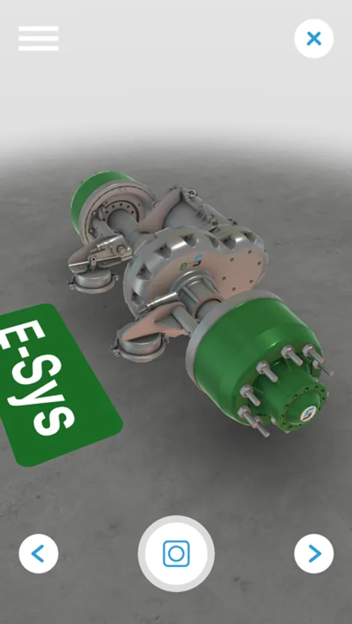 Aplicativo de realidade aumentada da Suspensys, com informações sobre a Suspensão TAS e sobre o módulo de tração E-SYS.