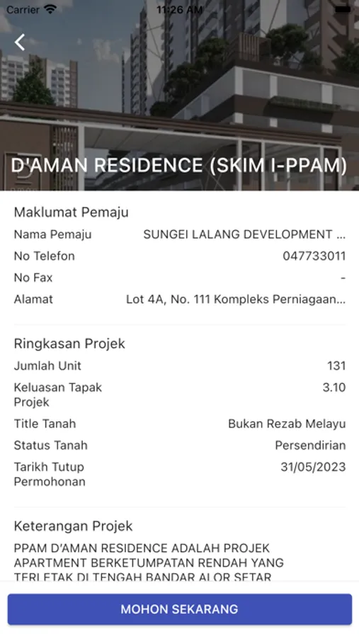 Aplikasi mobile yang memfokuskan kepada paparan projek PPAM yang dibuka untuk permohonan. Maklumat lengkap kepada projek yang dipilih boleh dilihat oleh pengguna aplikasi yang mana ianya dapat memberi gambaran awal sebelum pengguna membuat permohonan menerusi Sistem Perumahan Penjawat Awam Malaysia (SPPAM). Terdapat juga fungsi semakan status permohonan yang lebih mudah kepada pengguna aplikasi mobil. Ianya memerlukan nombor kad pengenalan pemohon dan juga kata laluan SPPAM untuk semakan status permohonan.