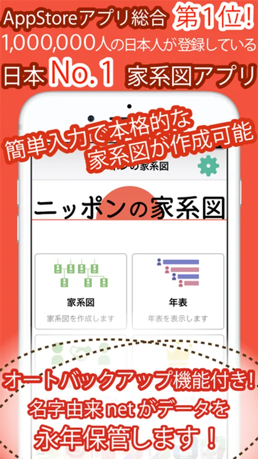 日本最大100名でも1,000名でも、無制限に登録できる、名字検索No.1の名字由来netが提供する家系図アプリ