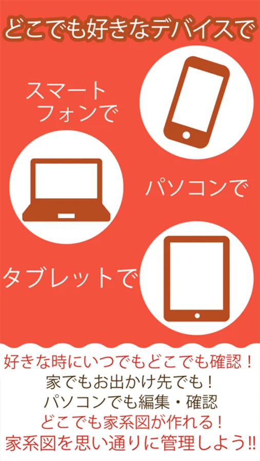 日本初!共通ID機能が付いているので、作成した家系図をWeb(PC)版でも参照・編集を行っていただけます。