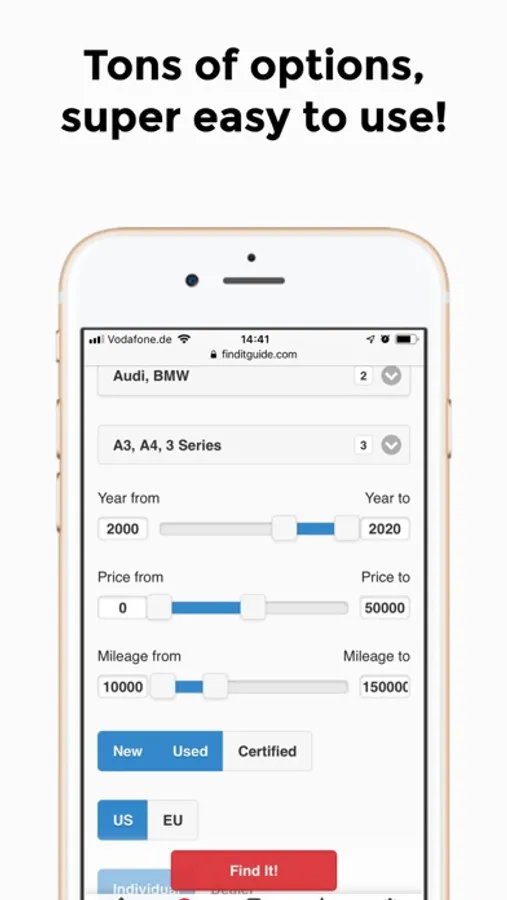 All the search power of FindItGuideCars.com, in your pocket and at your fingertips.