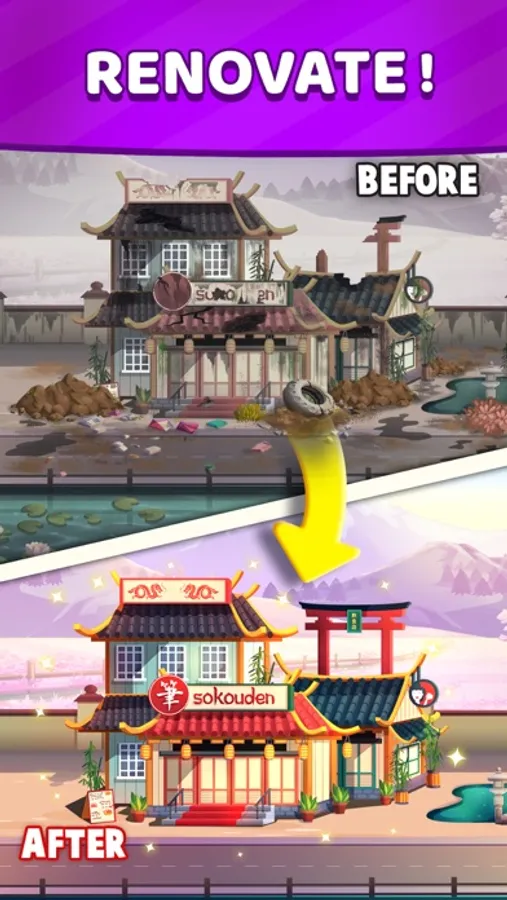 Swap & match 3 in a row to win levels and start building your restaurant in this new matching game!